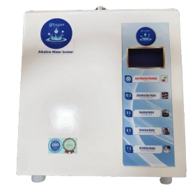 Discover our water ionizer with four pH levels: 7.5, 8.5, 9.5, and 10.5. It features an automatic reverse cleaning function for easy maintenance and titanium plates with a 0.5 micron platinum coating for durability and efficiency.